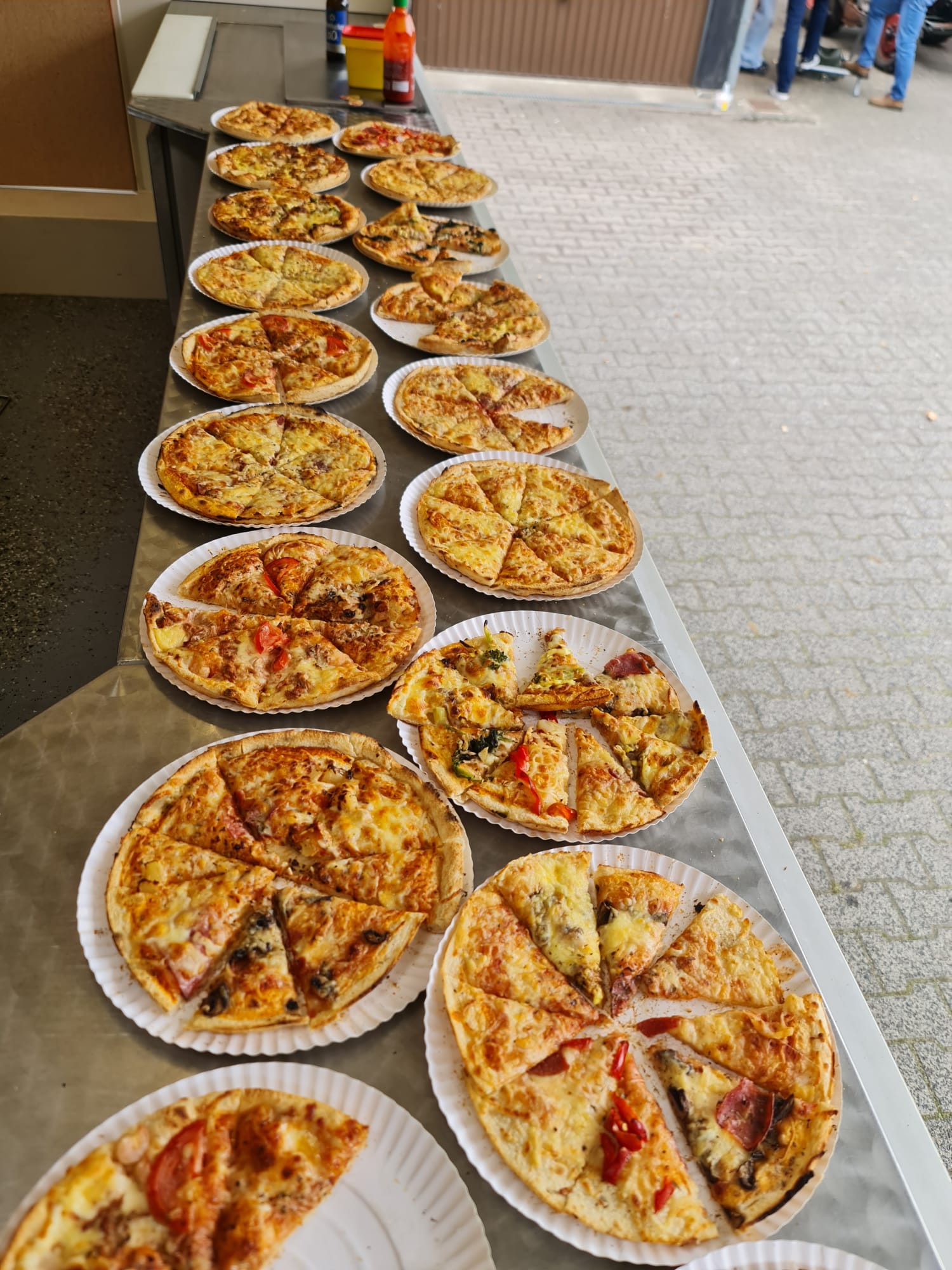 Unsere Pizzen werden vor Ort zubereitet und heiß zum Verspeisen serviert.