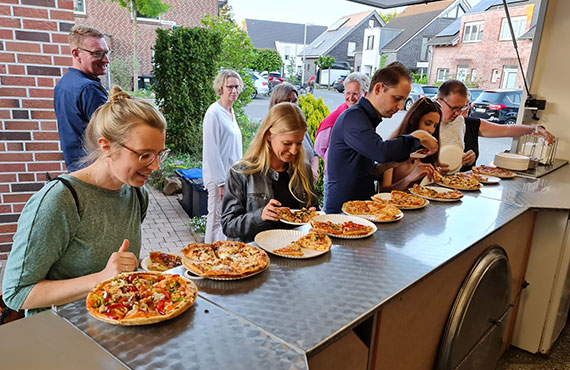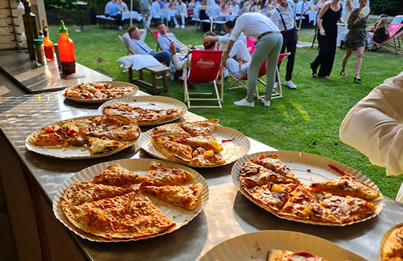 Sie planen eine Feier haben sich aber noch keine Gedanken über das Essen gemacht oder können aufgrund der zu hohen Zahl an Gästen diese vielleicht gar nicht im Alleingang Versorgen? Dies könnte wirklich ein Problem darstellen, denn das Essen trägt generell zur Stimmung der Gäste bei und wenn es gut ist, dann hat man am Ende meist auch zufriedene Gäste und kann einen schönen Abend verbringen. Und genau dies gewährleisten wir Ihnen durch unseren Partyservice. Wir servieren Ihnen die Pizza und bereiten sie Ihnen direkt vor Ihren Augen zu. Jedoch können wir Ihnen nicht nur Pizza anbieten, sondern selbstverständlich auch Salate, Antipasti, Nudelgerichte und für den Fall das Sie etwas weiteres im Sinn haben können wir dies in Absprache meist auch bewerkstelligen, der Kreativität sind was das angeht keine Grenzen gesetzt.